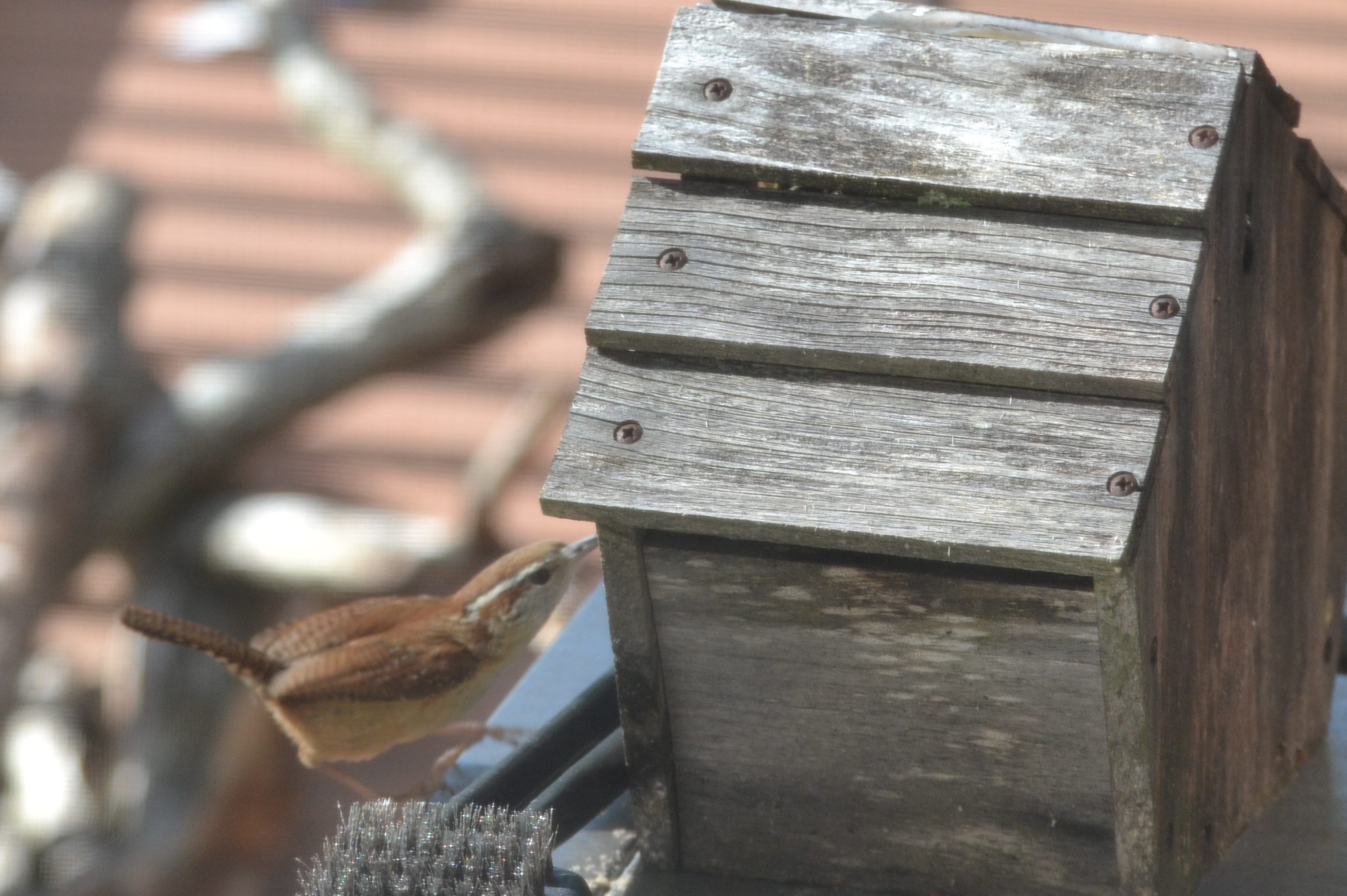 Last year, we had a pair of wrens move into a birdhouse one of the boys built as a Cub Scout project. It was a simple house, hung up under th