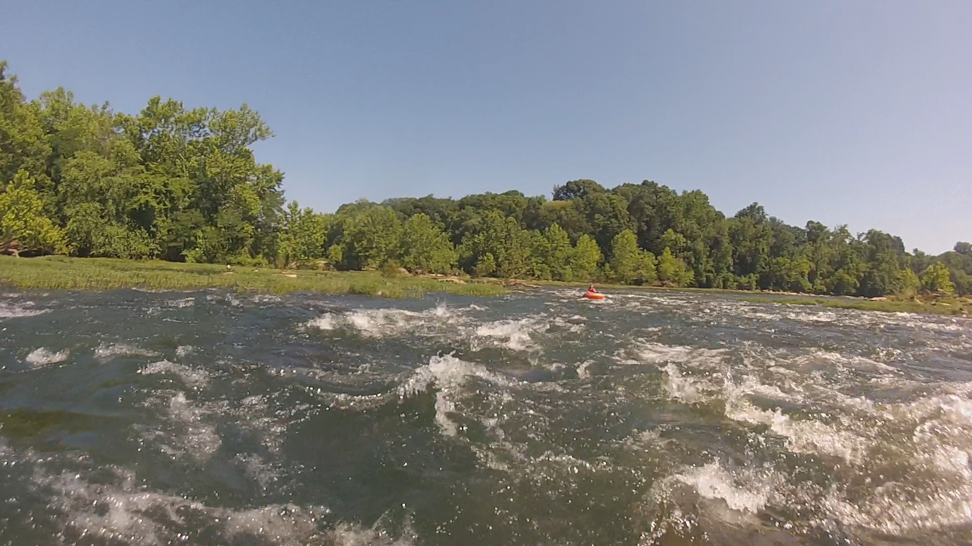 American Whitewater has a very nice site for monitoring river levels. Though this section typically has enough to run it most of the year, high summer drought can leave a lot of rocks exposed in the Falmouth section, and make the Backside inaccessible. On the other end, high water makes this stretch dangerous. Anywhere from 2.4 to 5 feet on the Fredericksburg gauge is reasonable (I ran it at just a hair under 3 feet and it was fun without being pushy).