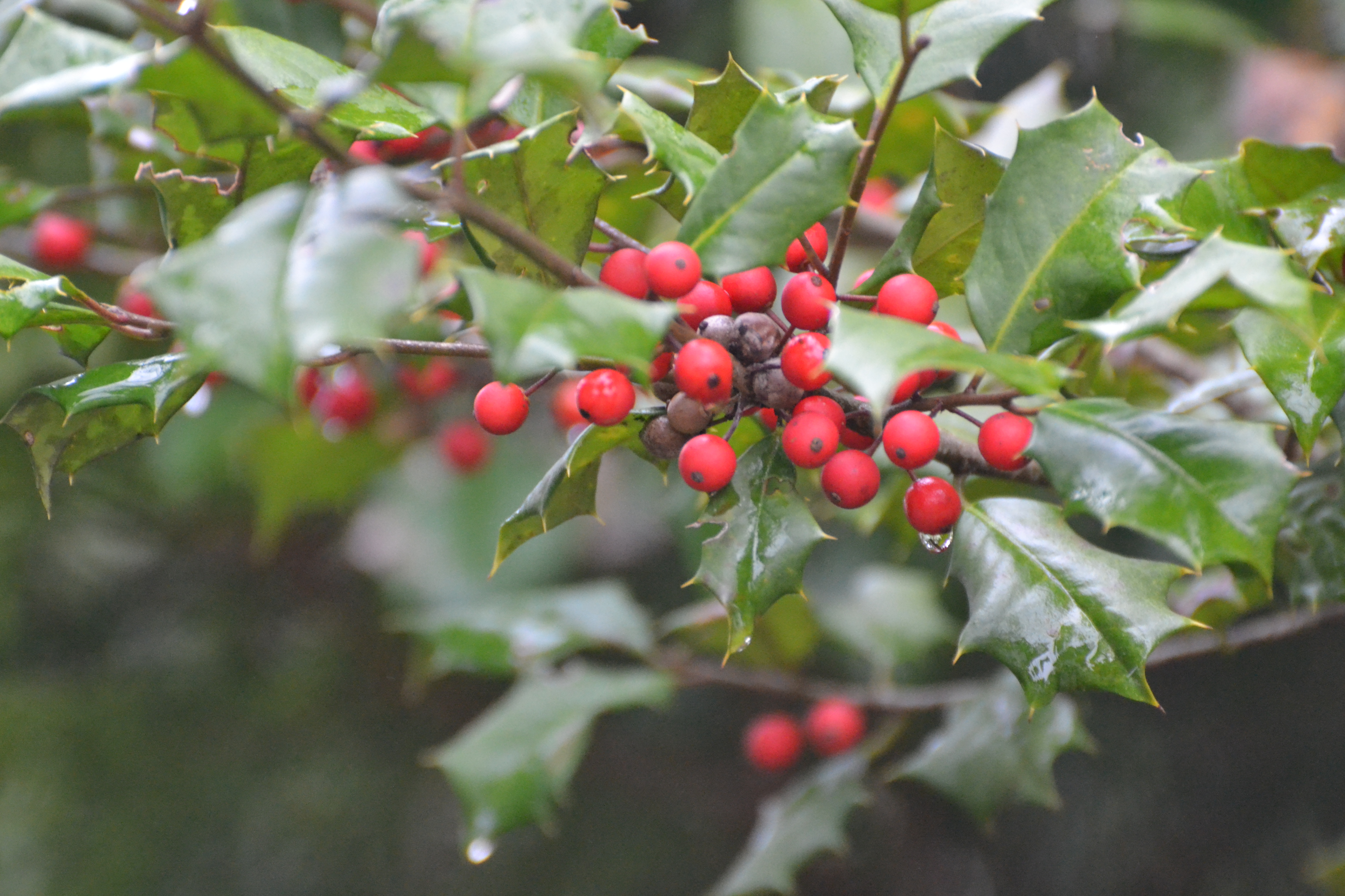 Red — Only female American Holly trees grow the iconic red berries in the winter. Male trees, always nearby, lack them. Share this: Click to share on Facebook (Opens in new window) Facebook Click to share on Reddit (Opens in new window) Reddit Click to share on Pinterest (Opens in new window) Pinterest Click to share on Bluesky (Opens in new window) Bluesky Like Loading...