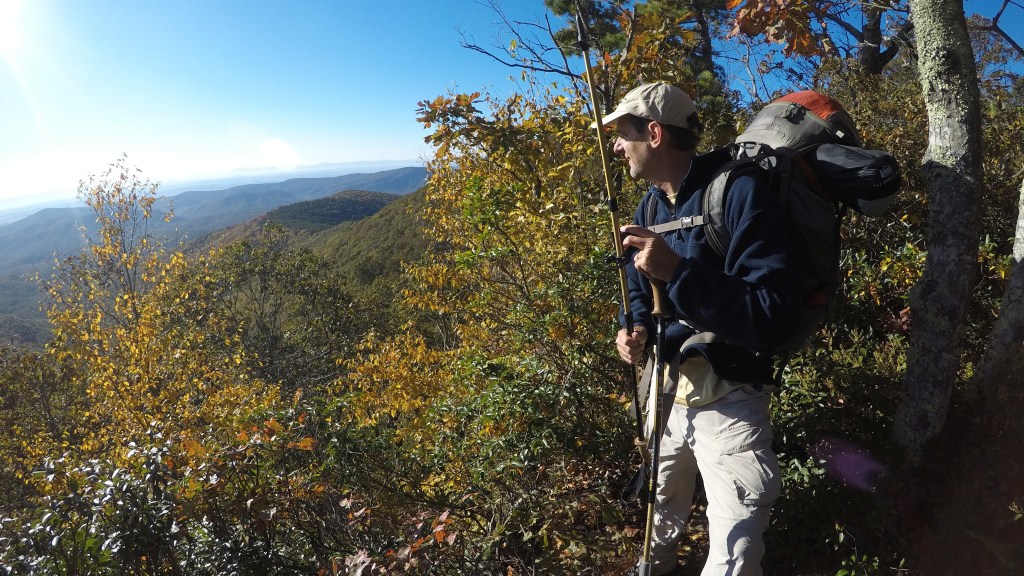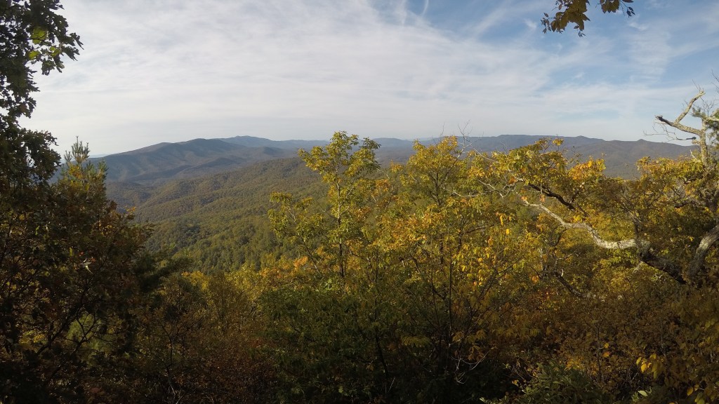 Aside from the aforementioned Stokesville FR95 lot, there are several side trails into the Ramsey’s Draft Wilderness, an intersection with Braley Pond Road on the west side, and another crossing of FR95 alongside the North River, arranged so that the road essentially bisects the loop. The trail itself is well-marked, with good groomed tread, with only a few rocky sections, the river crossing, and a few steep sections posing any serious challenges to navigation. I’ve seen several reports that the area in the northwest quadrant near the top of Big Bald Knob can get a bit overgrown in summer, due to its intersection with Ramsey’s Draft, and the prohibition of power tools within the Wilderness Area, but during our trek in October we had no problems.
