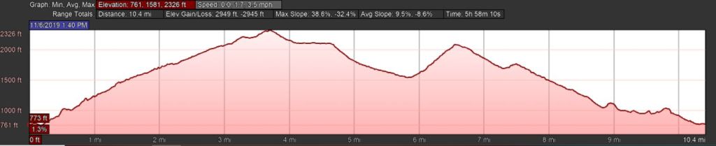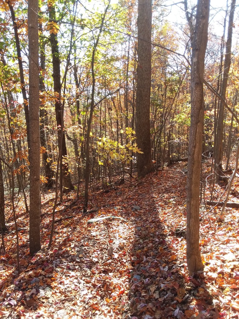 It’s all downhill from here. The trail gradually descends for almost four miles, meandering in and out of narrow hollows, occasionally intersecting with trails (e.g. Bearwallow) that lead south along the Massanutten ridge, and providing occasional views across Fort Valley to the eastern ridge. At mile 10.0, you leave the Tuscarora to rejoin the Massanutten Trail, and return the last 0.4 to your car.