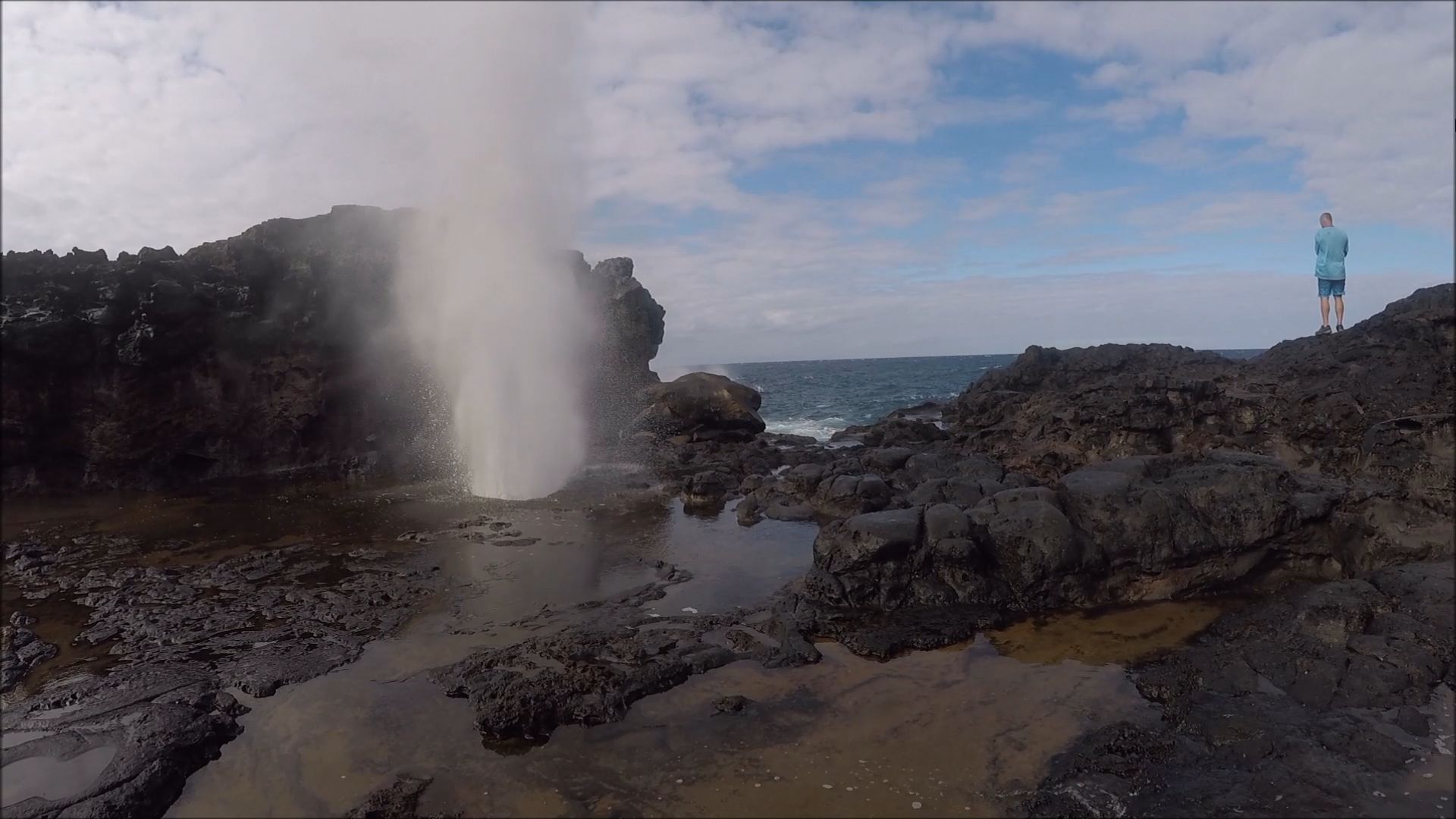 Nokulele alternately roared, spit, and sputtered. Its behavior is totally dependent on the waves entering the seaside cave, below us and out of sight. Sometimes, water would just flow in and out, and the needed compression didn’t happen. But when the waves aligned, and the air chamber was dry, Nokulele bellowed out a brief warning before firing a hundred gallons of sea water forty feet into the air.
