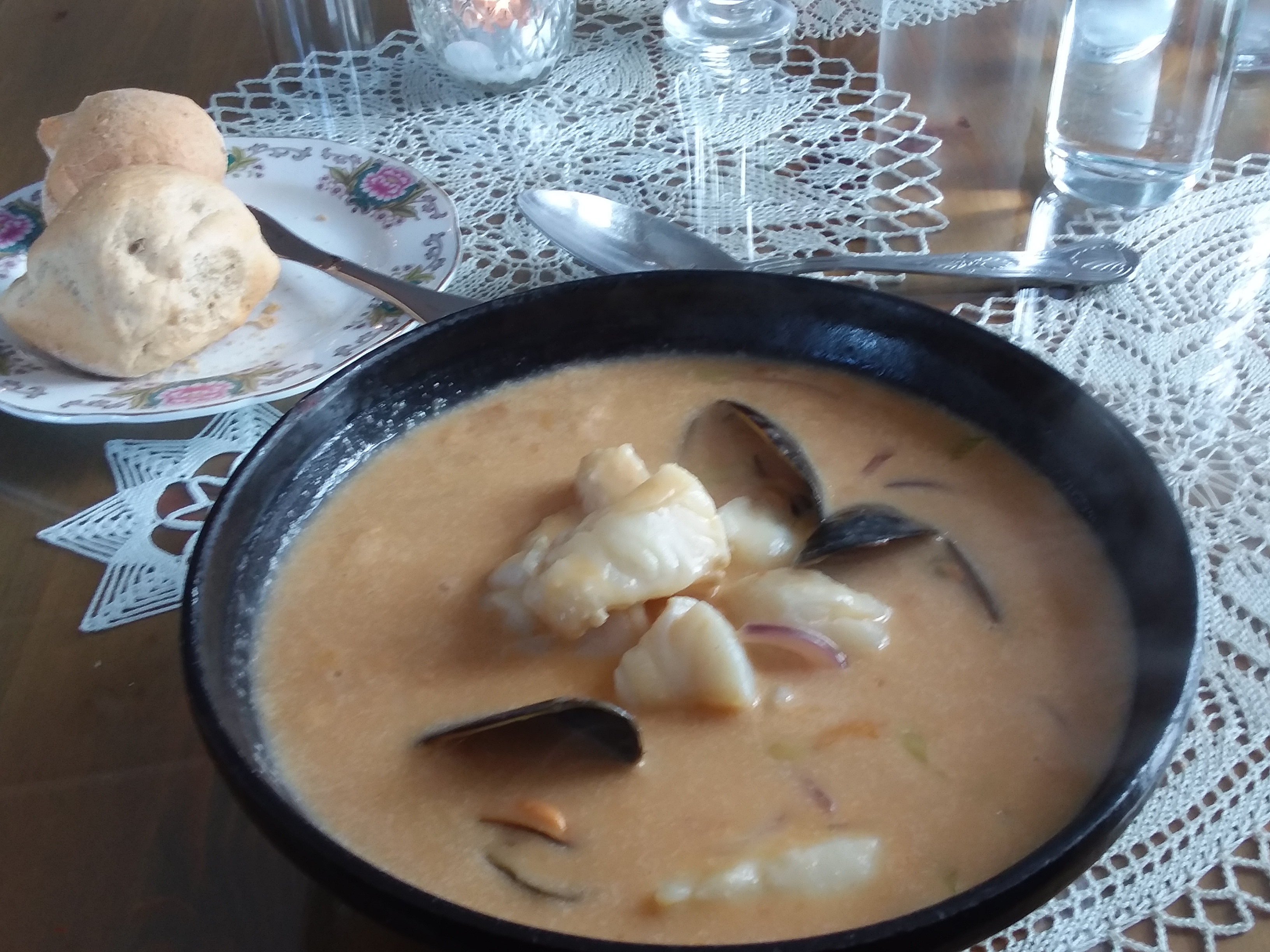 Our first actual MEAL in Iceland was not going to be in a hostel, however. We walked back to drop groceries, and then to the Bjargarsteinn Mathús right next door, where we had an excellent meal while watching the fog lift on Kirkjufell just across the bay. A lamb and potato shepherd’s pie, seafood soup, roast lamb, and snapper with blueberry sauce. Delectable!