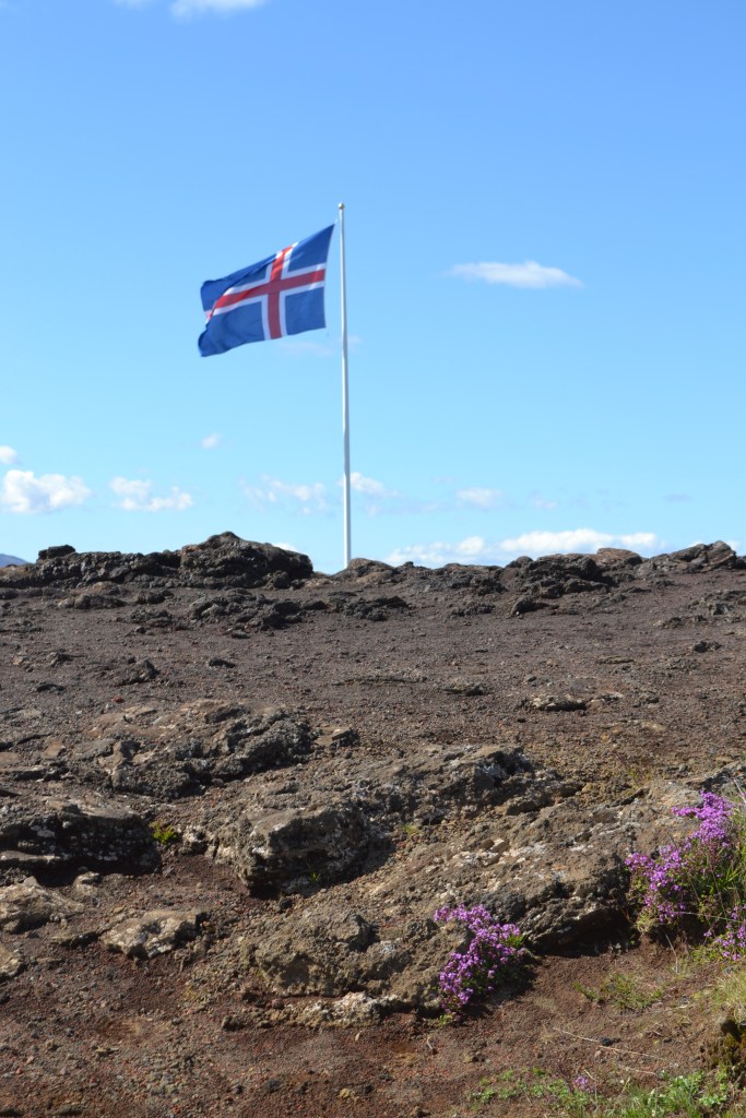 The cliff marks just one of many parallel fissures, cracks in the ground that run along this area. The eastern ones are beneath a lake, where strangely linear coves and inlets indicate the presence of straight cracks that have been flooded. Atop the most prominent cliff, at the Þhingvellir Visitor’s Center, you can see the wall of stone extending far to the north, until it runs into the side of a small mountain. These cracks are part of the Mid-Atlantic rift. They are the boundary between the North American (to the west) and European tectonic plates, and they are slowly pulling apart, occasionally allowing magma to break through the thinning crust. The mountain to the north is actually a small volcano that was created exactly this way, and the fissures extend beyond it. On a macro scale, it is this volcanic activity from this tectonic movement that created all of Iceland, and that causes the continued volcanism to this day. Here, you can not only see, directly, the cracks between the plates, you can walk down between them – or in the lake, you can even scuba dive between the continents. It’s a little mind-bending to walk into a crack and realize that one continent is on your left, and another is on your right, and that such things do actually have visible boundaries.