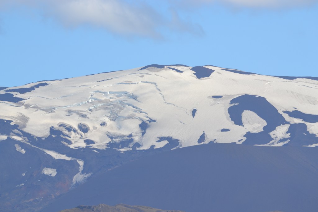 On our way back to civilization, we paused to admire the Hekla volcano. This mountain is extremely active, and has been for centuries. Recently, it has erupted in 1970, 1980, 1990, 2000… and then nothing. It was now 2019, but the mountain seemed quiet, except for obvious slabbing of the snow and ice on its summit, hinting of avalanches in the near future.