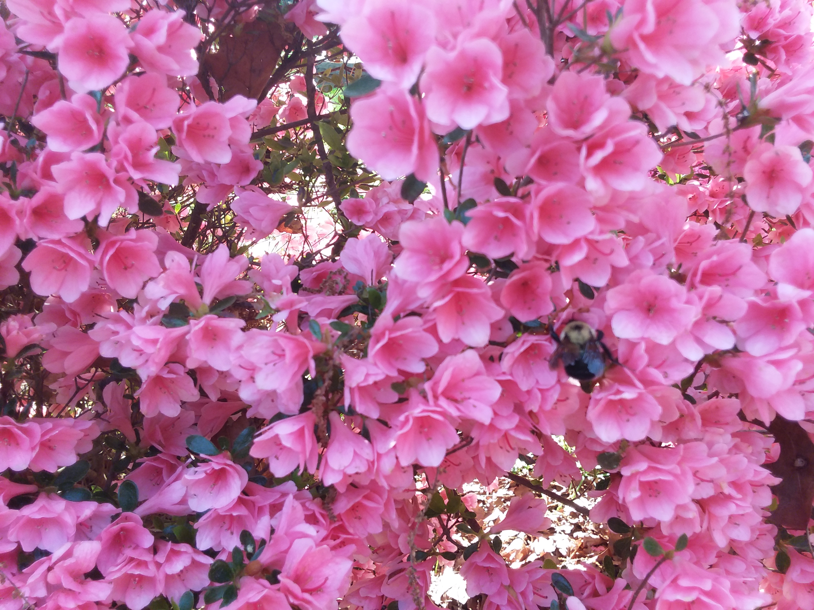 Azaleas are a “garden” flower, or maybe a nice shrub to line the driveway – but occasionally, walking through the forest, you see these relics alongside daffodils, indicators of a more human-cultivated past. They bear testimony that a homesite used to stand here, and the plants, and the bees that love them, thrive long after the people have moved on.
