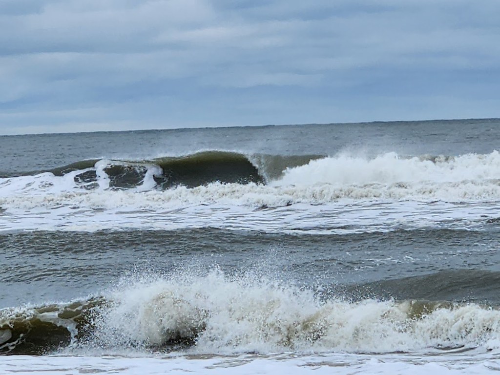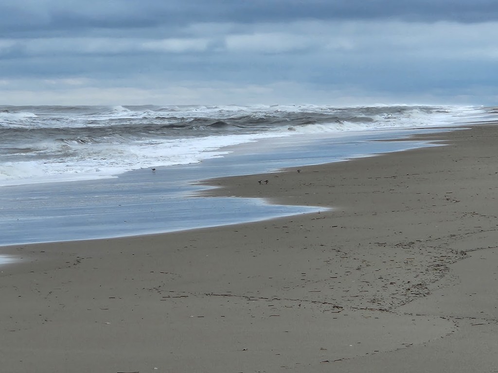 Eventually, we made it to a significant gap in the tall, first line of dunes that stood between us and the ocean, so we had to go take a look. The Atlantic was lively, with waves still rolling in angrily, driven by the strong winds. But the beach – other than a few off-road vehicles and fishermen to the south, and the distant skyline of Ocean City high-rises to the north, it was sand as far as the eye could see in any direction. It’s a landscape that has looked much the same for hundreds, maybe thousands of years.
