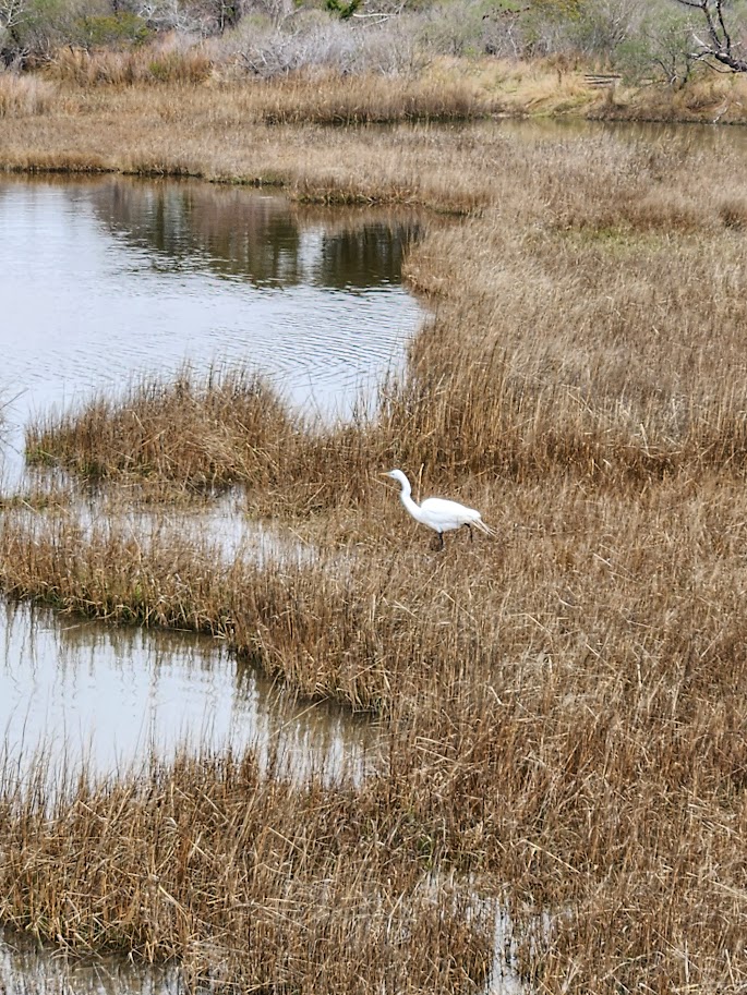 So, in pursuit of a horse sighting, we headed toward the Life Of The Marsh Trail very close to the Bayside Campgrounds, and very close to the brown and white patch I’d seen across the marsh.