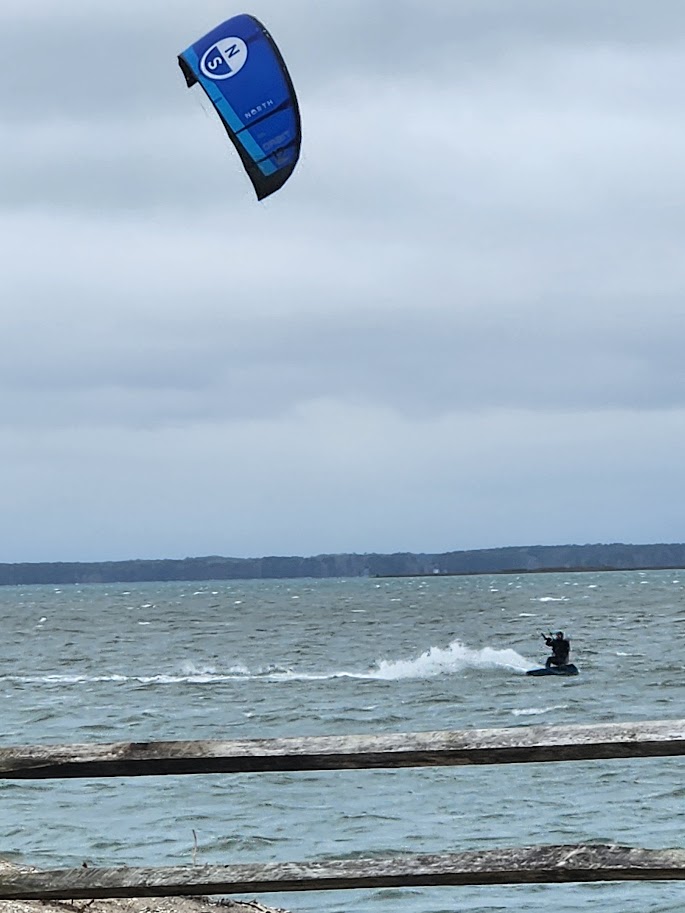 From here, we returned to camp briefly to charge some electronics before heading out to the point adjoining the Bayside Campground. There’s a picnic area here, and another kayak launch, as well as a concession that rents boats and snacks during the summer months (they were closed up tight during our visit). Instead, several kitesurfers were cruising Sinepuxent Bay here taking advantage of the steady breeze and shallow (about 2 feet) water. If you want to take an overnight paddle trip to one of the backcountry sites further south, and don’t bring your own boat, overnight rentals are available here as well.