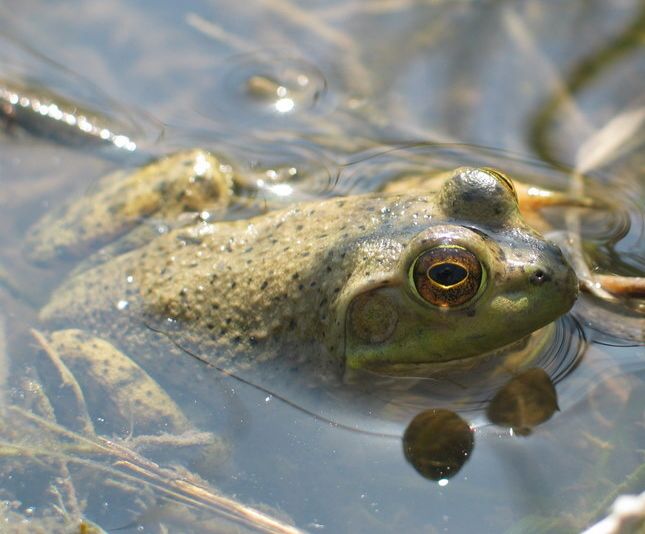 It’s early May here in Southern Maryland, and the neighborhood drainage and retention pond near my house is hopping! Literally!