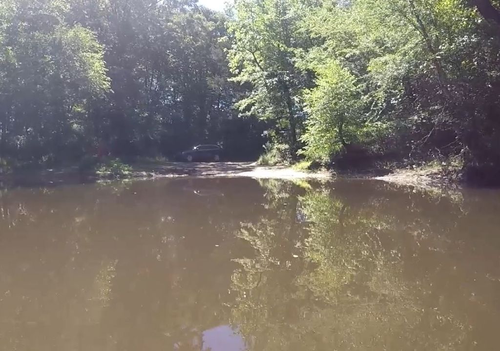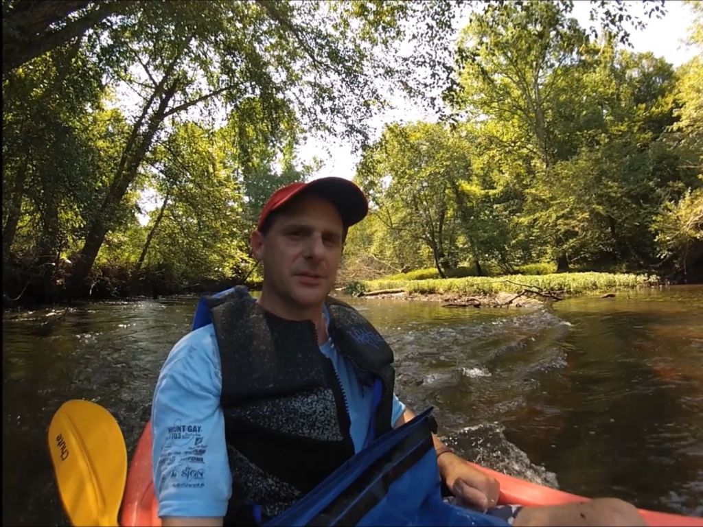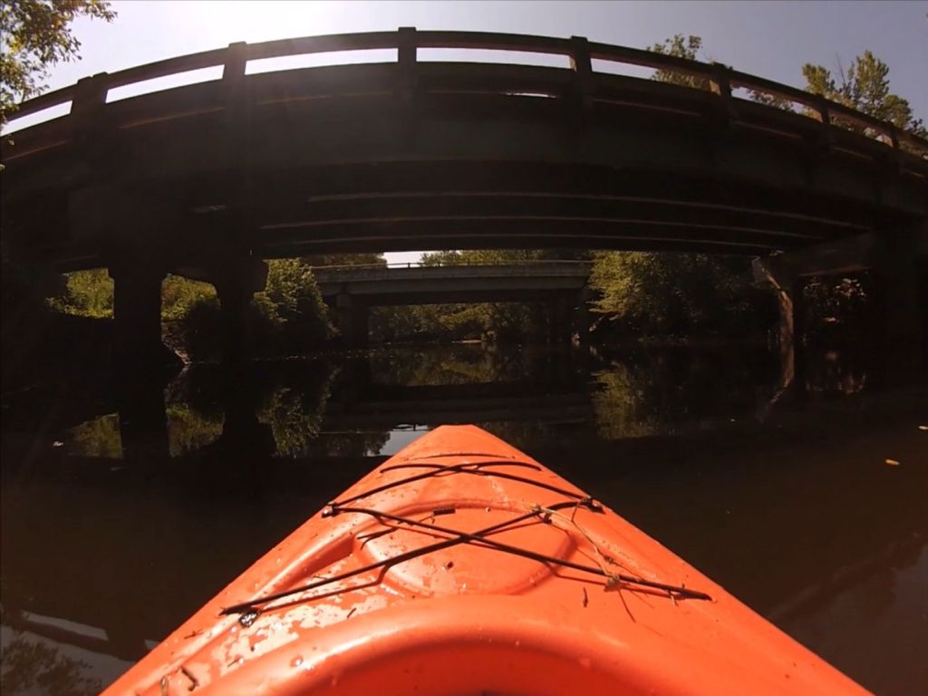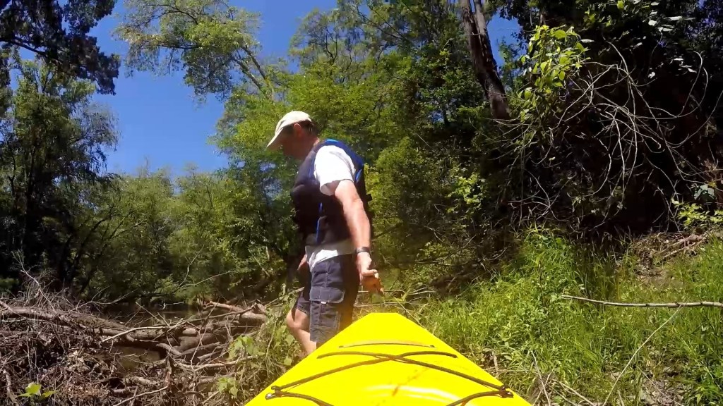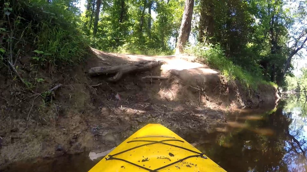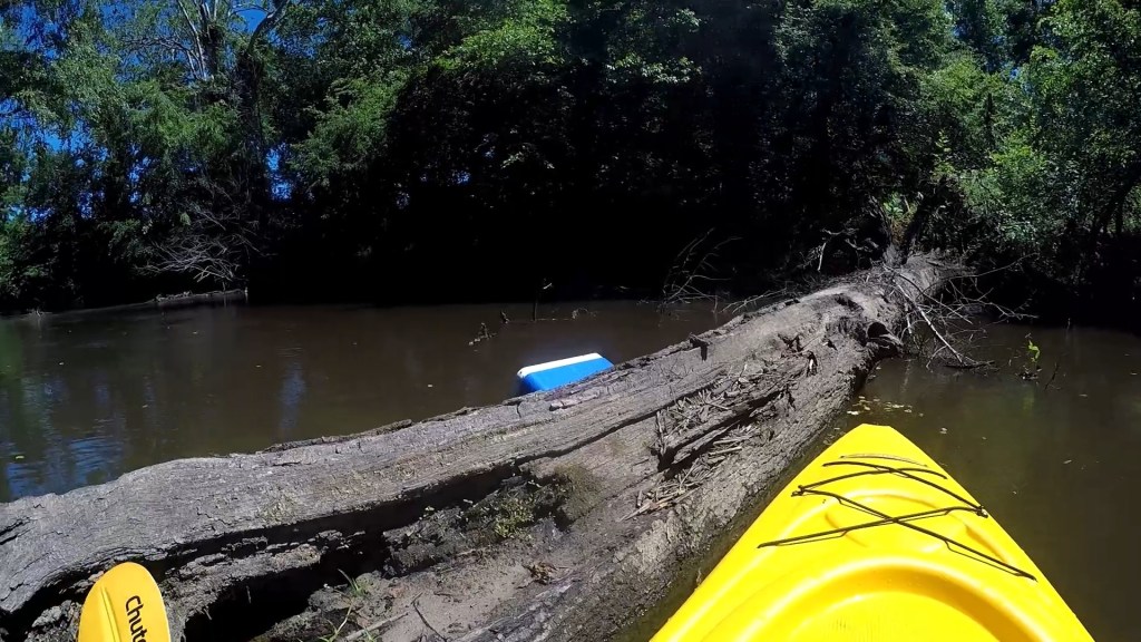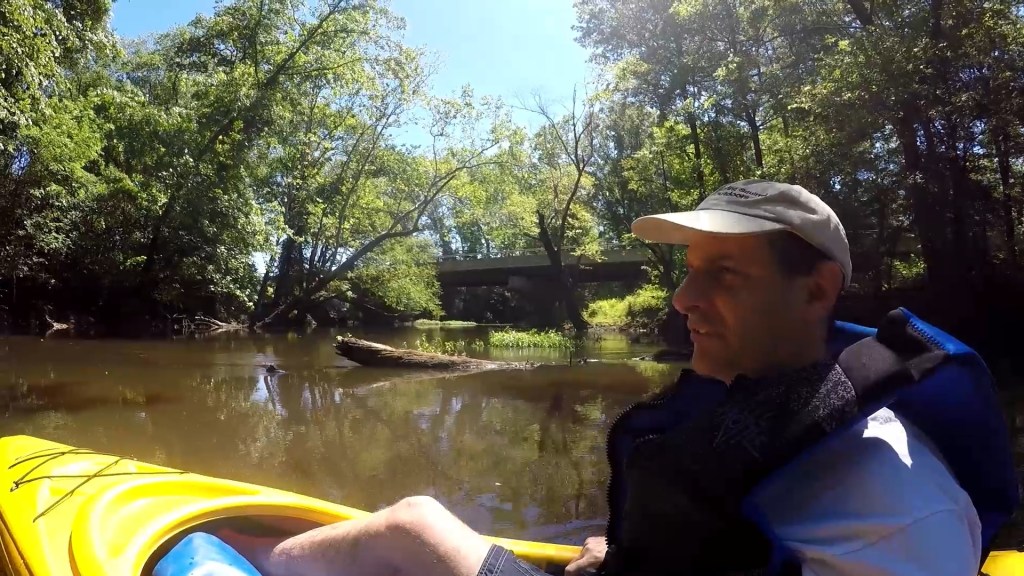 When I paddled this section, I had to haul my boat (10′ Pelican kayak) over five separate trees, though they were all fairly simple – pull up parallel to the trunk, get out of the boat onto the tree, pull the boat over and get back in. I also did this as an out-and-back, which means I had to navigate the obstacles TWICE, but is also evidence that the current is light enough to go back upstream without much trouble.