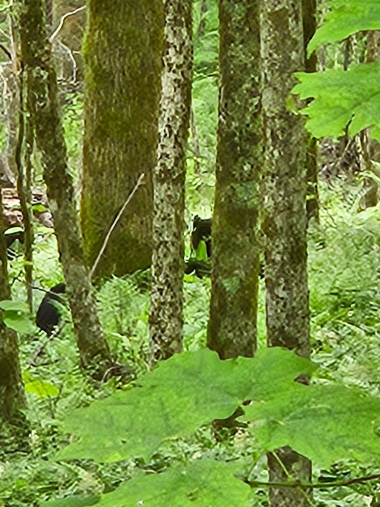 The climb up and over the first gap was steep in places, but not horrible. Difficult enough that we paused in the gap for some calories before descending the east side of the ridge and soon joining another creek. Shortly after we started hearing water, we looked across the creek to see another pair of bears – this time a mom and a single cub.