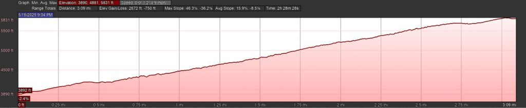 Mt. Sterling was a challenging drive, but it got us to a point where we could make a quick entry into our trip. Day 1 was only 2.8 miles of walking, but that contained 2,000 feet of climbing up to the summit of Mt. Sterling and its namesake campsite (#38).
