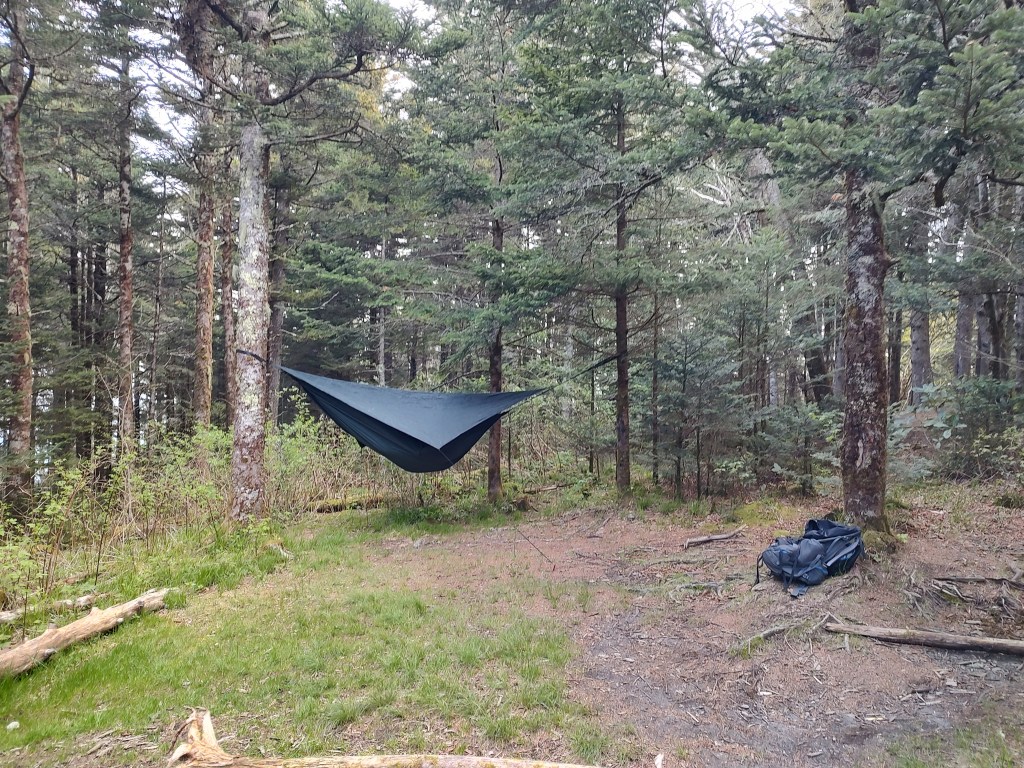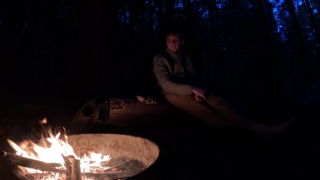 Despite the damp, we got a fire going to try and get a head-start on drying our boots and socks, and went to bed early, soon after nightfall.