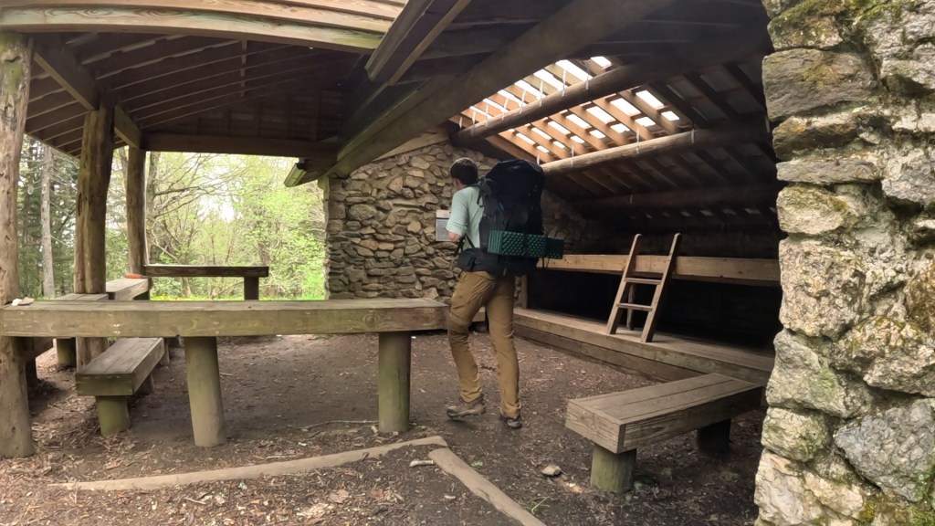 It was too early for lunch, but we enjoyed a snack break at the Laurel Gap Shelter, a little over 6 miles in. To this point, we’d barely lost any elevation, but the plunge was coming.