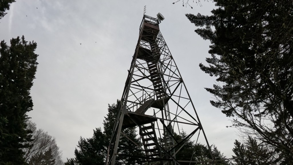 We climbed from deciduous hardwood forest up through stands of fir, surprised at how many springs were flowing even above 5,000 feet. It was a long arduous climb – the toughest, most continuous ascent of the entire trip, that ended at an open fire tower on the summit (5,843 ft). Mt. Sterling itself is wooded, but the fire tower offers great views in all directions, provided you can stomach the exposed climb to the mostly glassed-in observation room at the top.