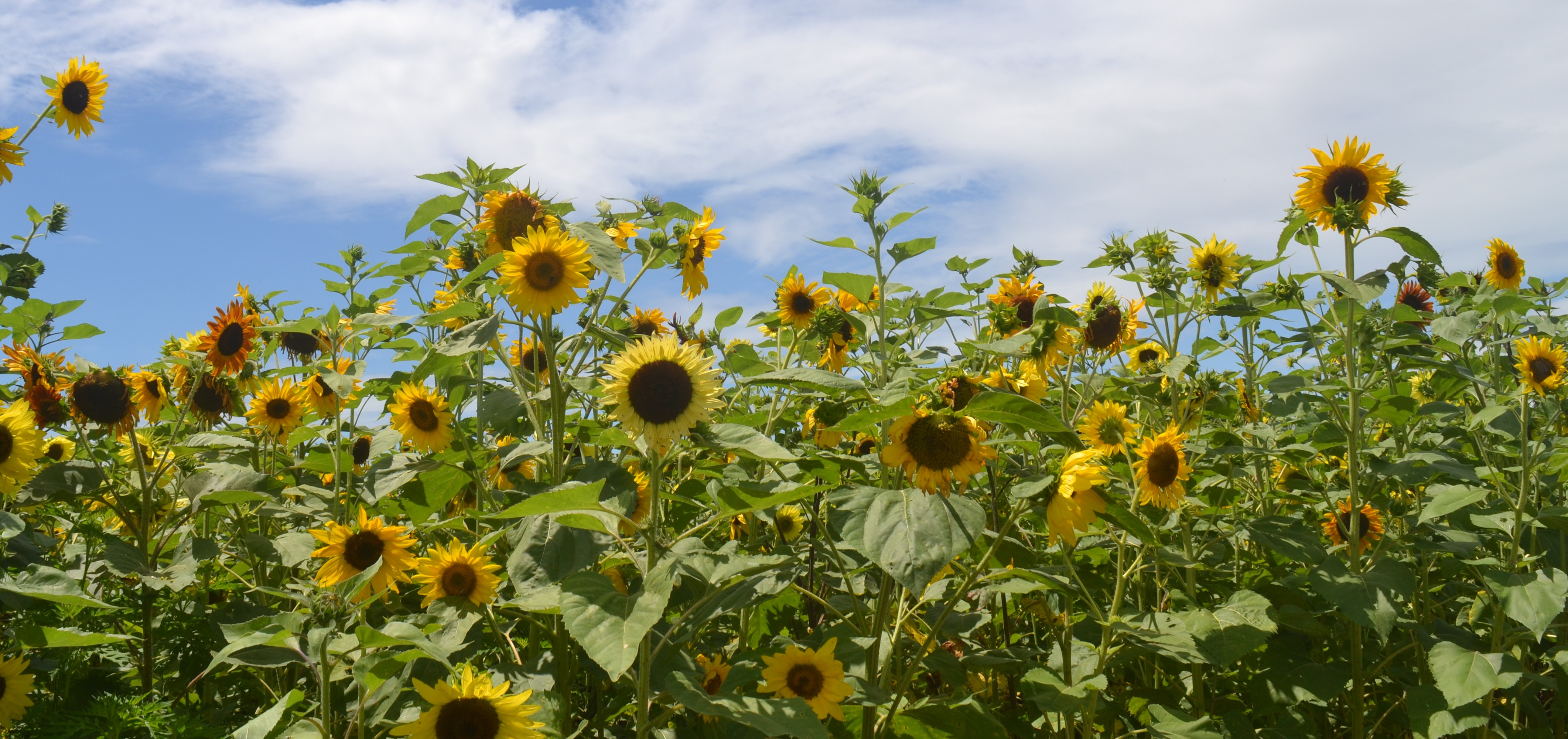 It’s high summer. Haze, high humidity, intense heat, and the threat of thunderstorms have become a daily routine. Last week, as the temperature briefly dipped into the mid-80s (F), and the forecast included thunderstorms for the next five days, we took a quick opportunity to get out to the local produce farm with a side trip to a farm specializing in cut flowers and a large field of showy sunflowers.