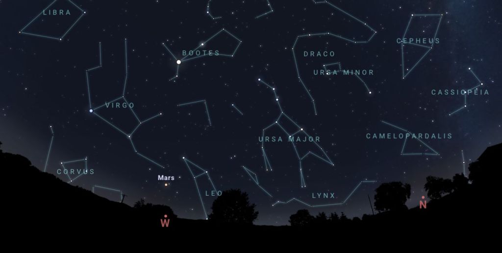 Arcturus is the Alpha – the brightest – star in the constellation Boötes, the Herdsman. To find it, follow the curve of the handle of the Big Dipper (or Plough, if you’re from across the pond). If you continue that curve across the sky, you “Arc to Arcturus”, an obvious star shining brightly at the bottom of a large kite-shaped constellation.