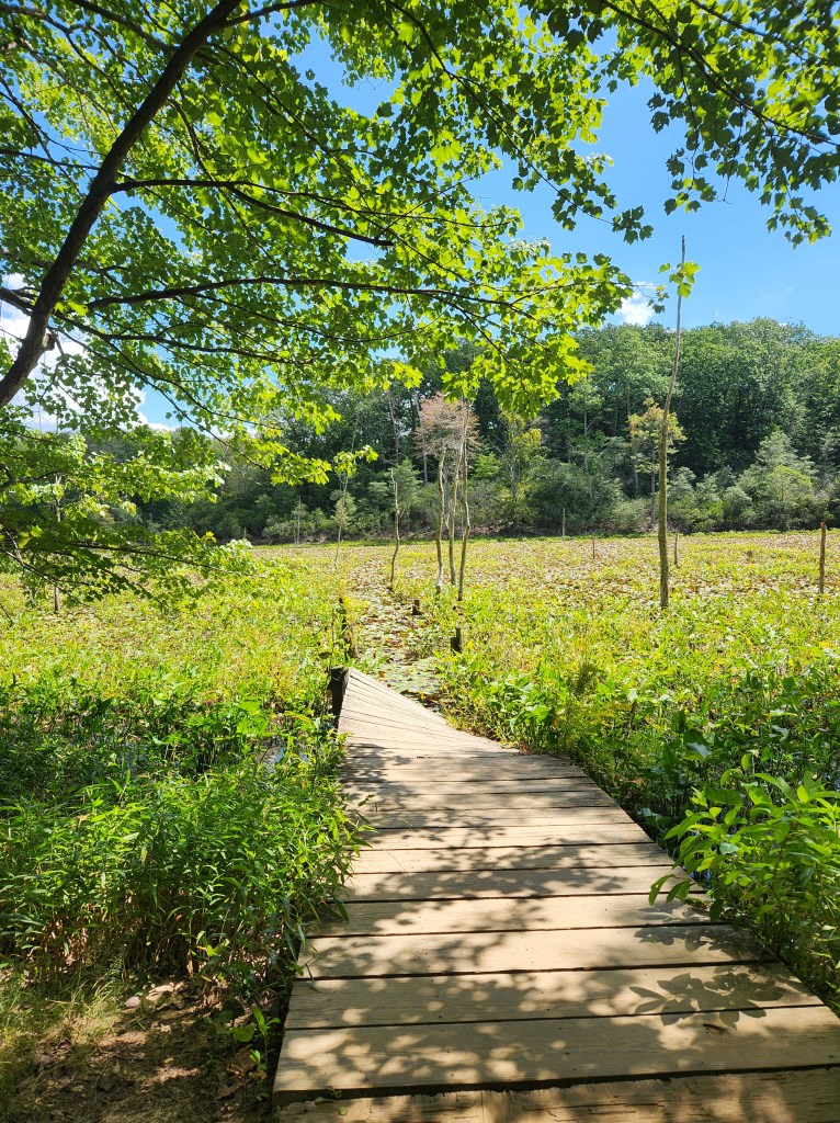 Much of the lower Red trail follows a boardwalk, inches above the water. There used to be a deck built out in the center of the marsh, providing a viewpoint from the center of the lake. Over time, that deck has deteriorated and not been replaced, so now there’s a short, twisted pier to nowhere.