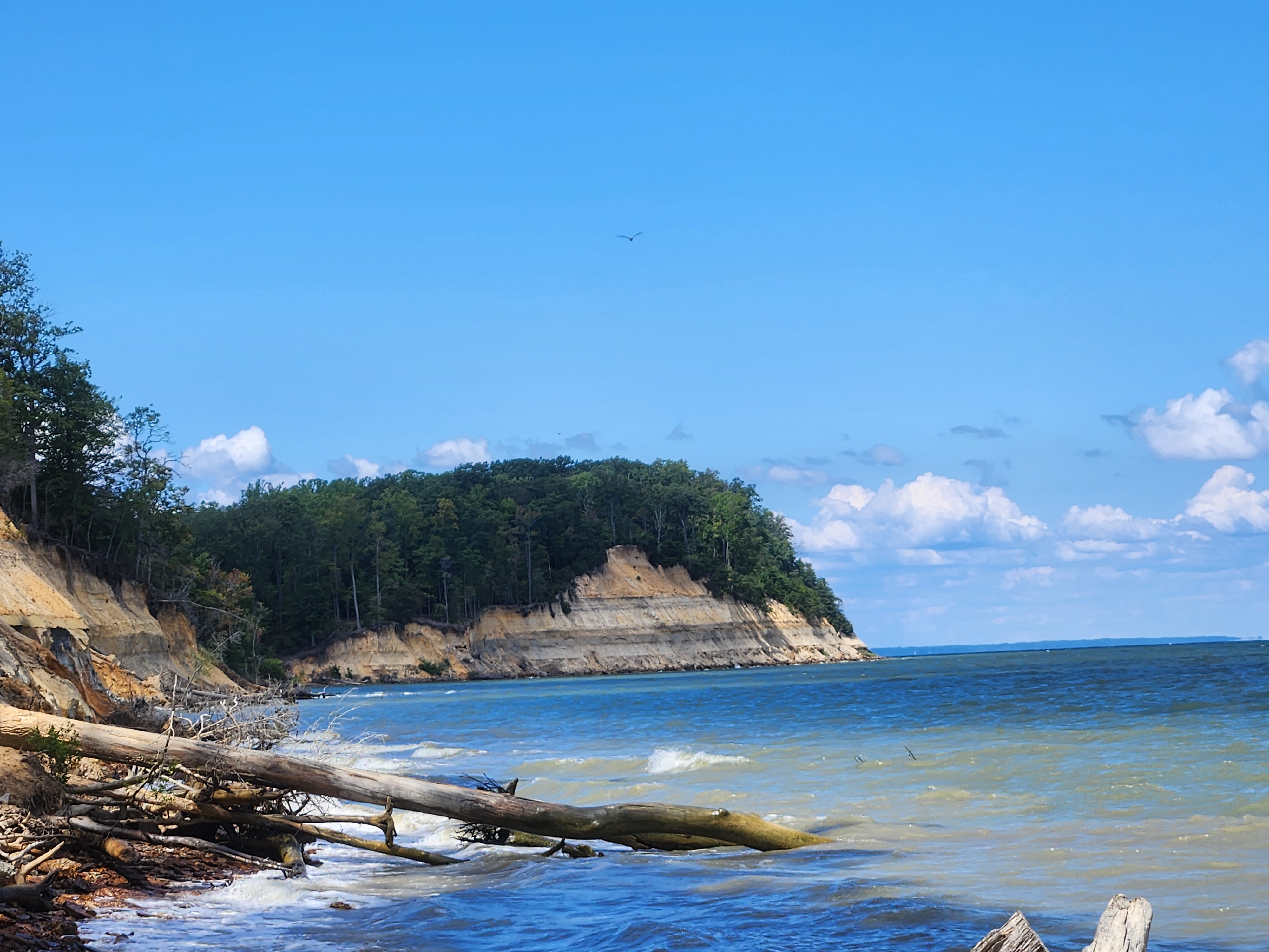 And finally, there’s the Chesapeake Bay, and the park’s namesake cliffs. When we arrived, we found almost a hundred others enjoying the beautiful weather. We didn’t stay long, but the sound of waves lapping at the sandy shore is always relaxing. There are typically a lot of Miocene-era fossils to be found here too, including megalodon teeth if you’re lucky!