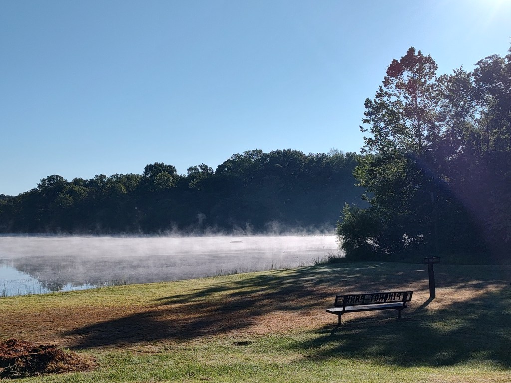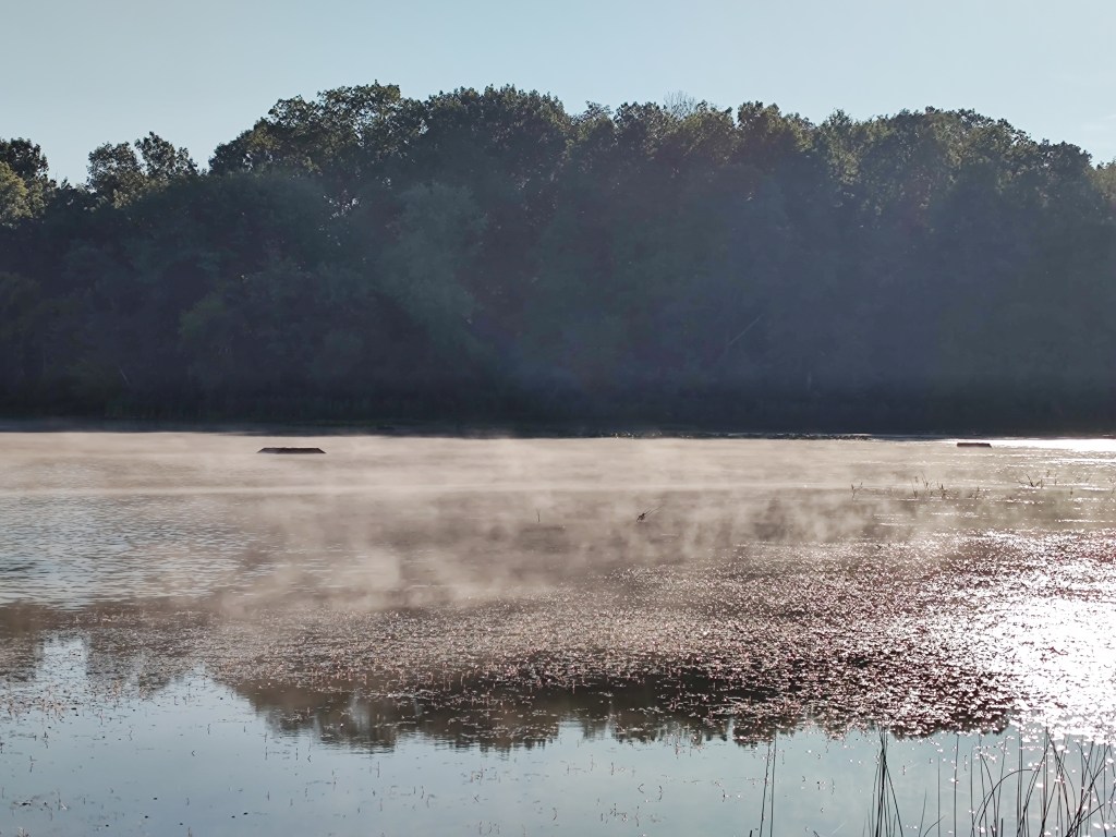 The next morning, we took a hike around a portion of the lakeshore before packing up and heading home. The early morning mist coming off the lake was gorgeous.