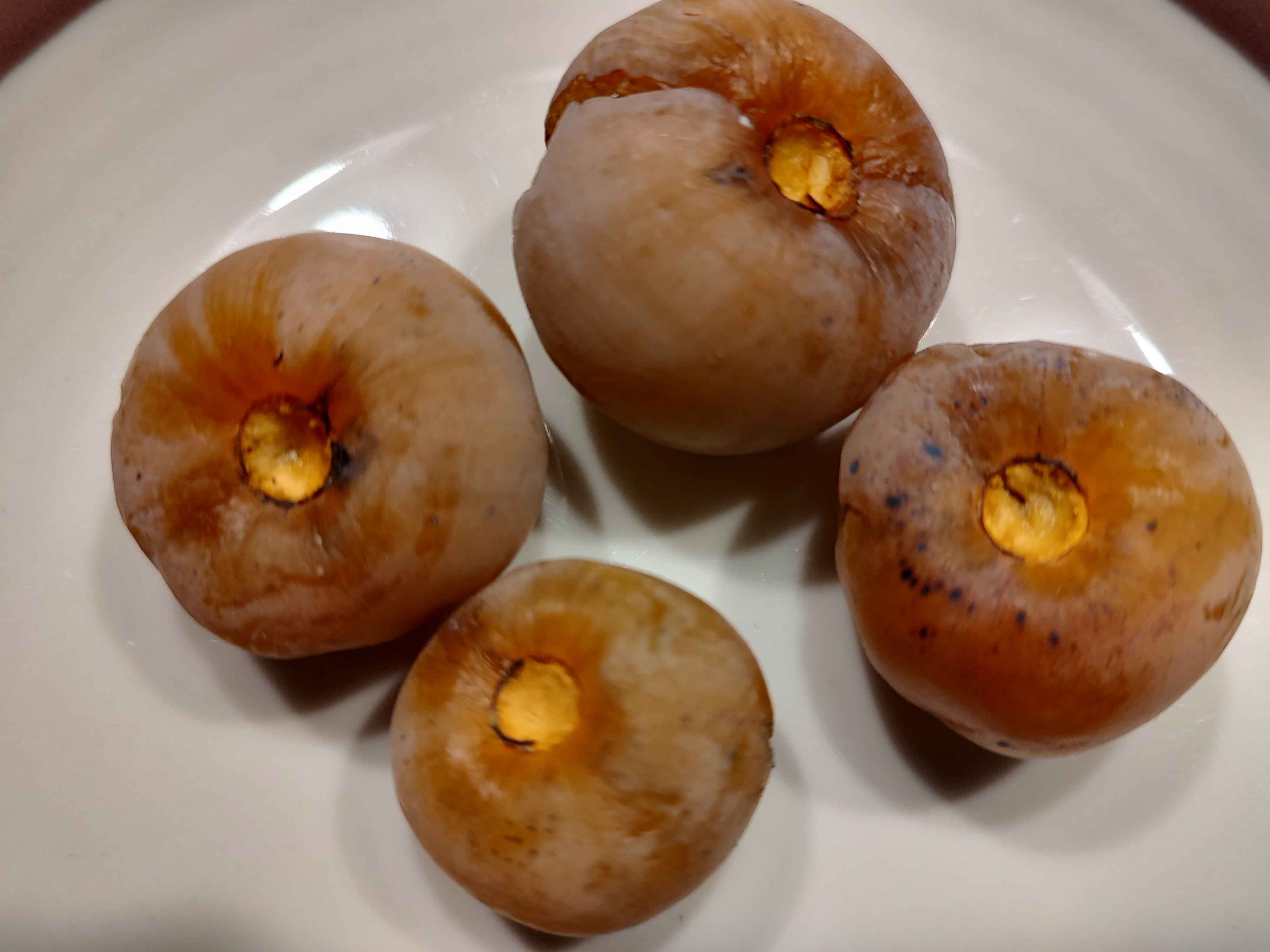 We collected some persimmons that had already fallen to the ground, clearly ripe. At first I misunderstood the assignment and thought I was looking for the shape of the core of the fruit – stem to stern, so to speak. (Again, this is new to me!) But I cut the fruits in half through the core and saw no utensils, so I had to go look this up again.