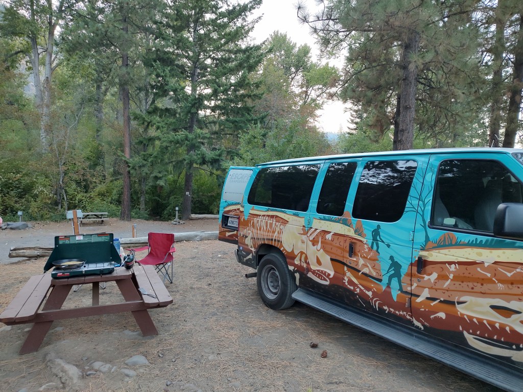 To pull this off – and I have my wife to thank for it – we rented a campervan from Escape Campervans* in Seattle, so that we could continue to be on the move and stay in proximity, or at least on the way, to all the sights we wanted to see. This is something we wouldn’t have even considered a year ago, but our recent experiences with our little T@G teardrop trailer gave us the confidence to commit to a life on the road, planning to intentionally spend every night in a van… down by the river… (or lake, or Pacific Ocean, or creek…).