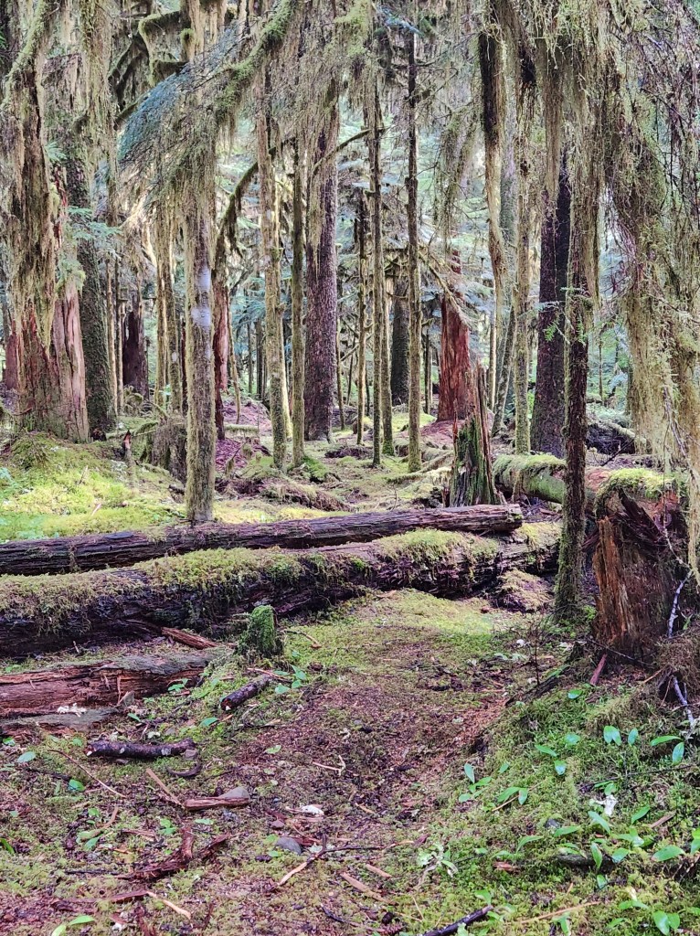 Leaving Sol Duc, we headed east and slowly made our way out of the steep valleys of the Olympic Range and into the coastal plain. We had to admit we were starting to wear down. We’d already hiked 6-ish miles – which isn’t necessarily a LOT, but, we’ll just say it had been a long day already.