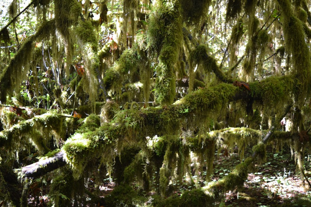 But trees aside, the mosses are the star. In fact, the Hall of Mosses Trail includes a side trail over to a viewpoint that is simply a gallery view of an open section of forest, FULL of green and yellow moss.