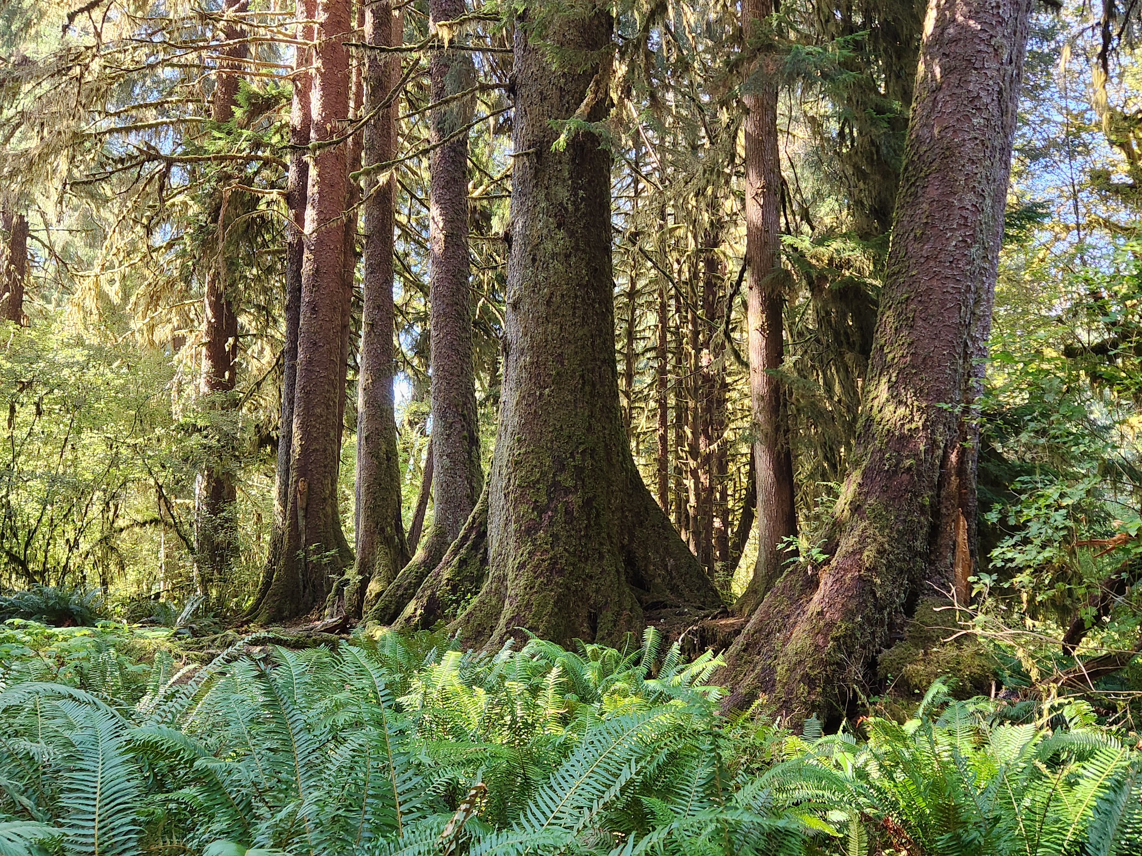 I was wrong to feel like we’d seen enough. If you take all the large trees, the club mosses, the fern understory, and crank it up way beyond eleven, you get the Hoh. There were areas here where the trees were not visible because they were completely covered with moss. Every branch was merely a framework for mosses, lorded over by 8-inch banana slugs. The trees, while still impressive, take a backseat here, at least on the surface.