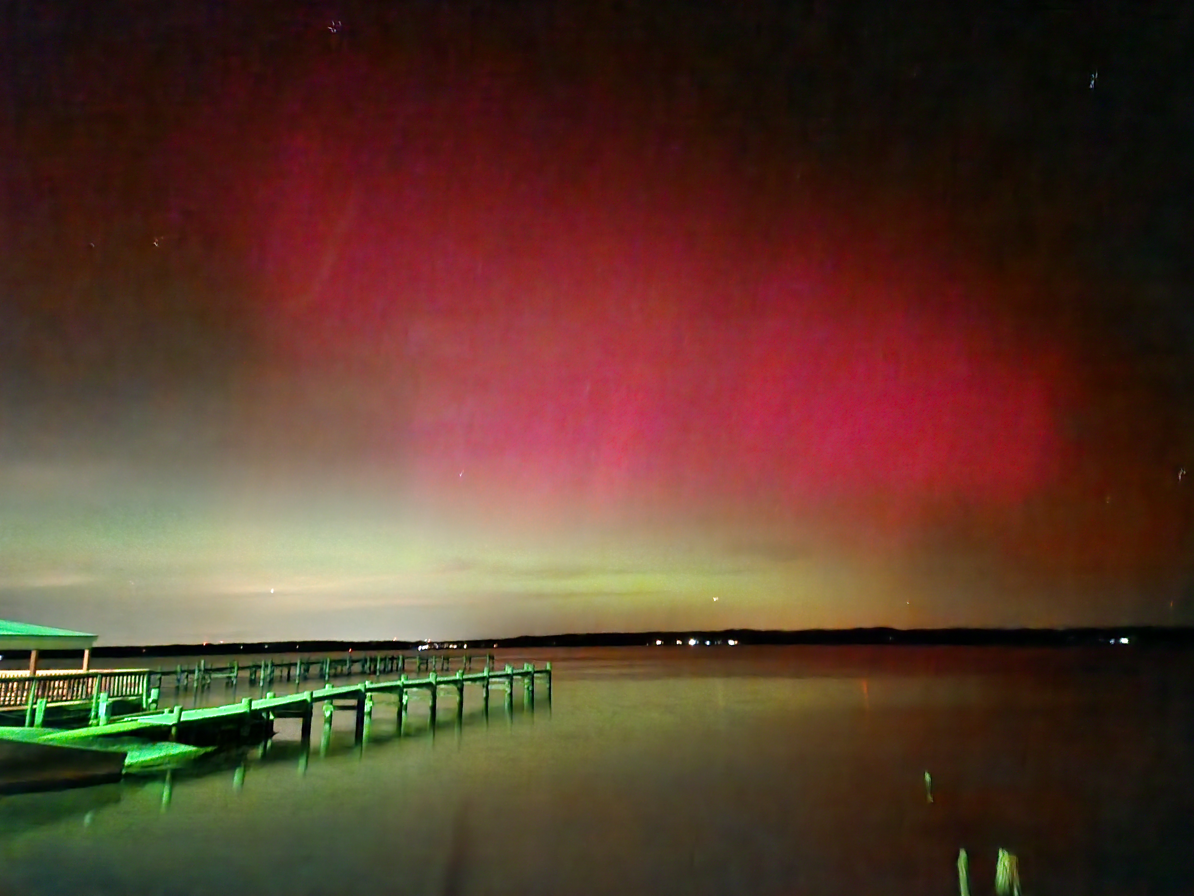 I have to give my wife credit for being able to see the aurora on Veterans’ Day (Nov 11, 2025). She was tracking that a Coronal Mass Ejection (CME) had taken place and that we had potential conditions for a geomagnetic storm. The data I found showed that nothing much was happening, we had a 1% chance of seeing anything… and then she went out in the front yard and took a picture showing clear red across the northern sky.