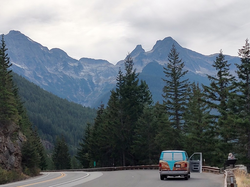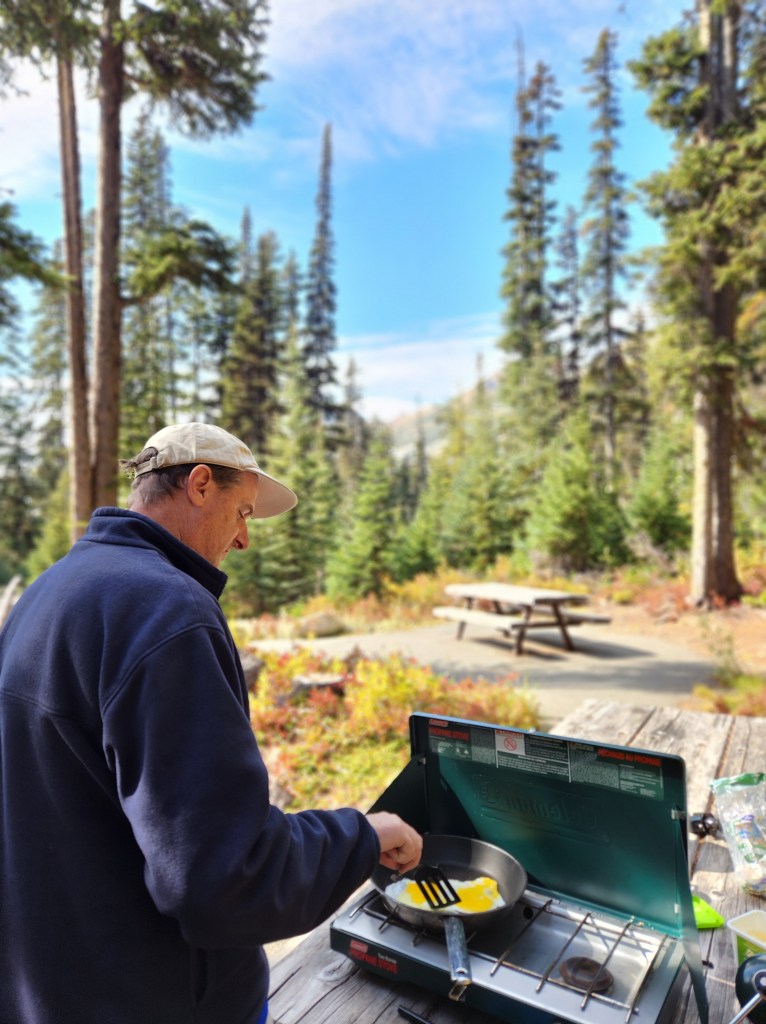 When we last left our heroes, they were at Diablo Lake in North Cascades National Park, marveling at the deep turquoise color in disbelief that it was actually real. By this time, lunch was calling, and so our next objective was to find a good place for that. We were stocked up for one last “brunch” of egg sandwiches, eggs and feta, etc, etc, we just needed a place to cook it.