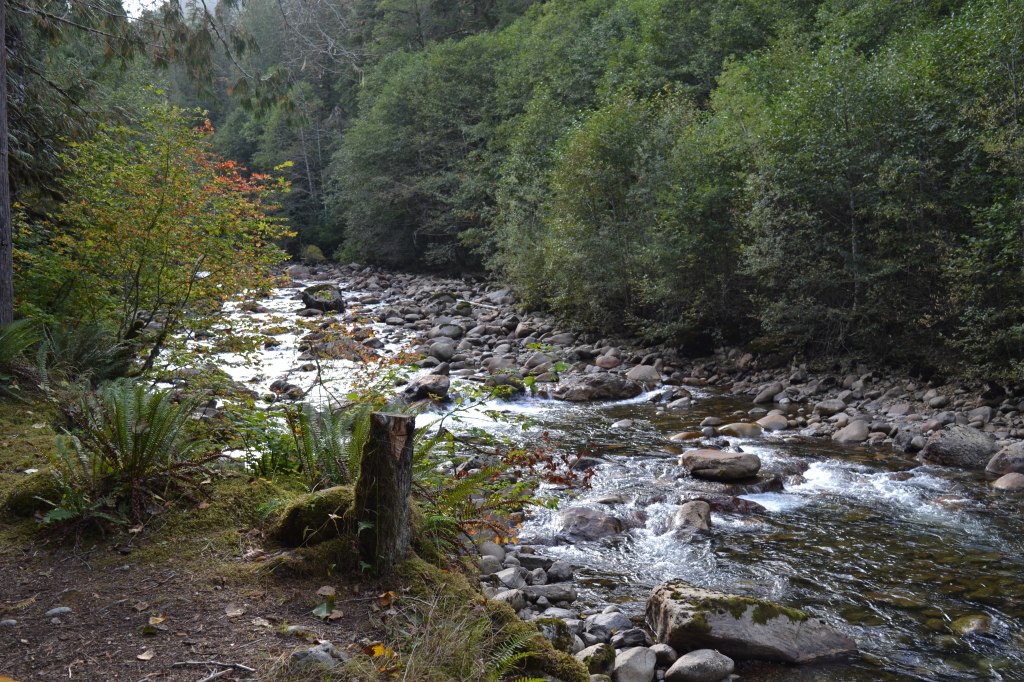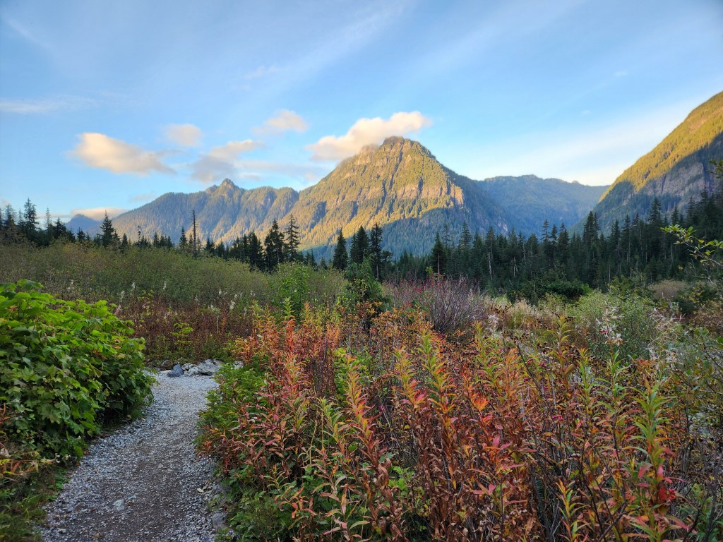 There was one particular stretch where the road paralleled the Sauk River, headed upstream. The river itself wasn’t much wider than a two-lane road, and it babbled happily over rocks and down occasional cascades. All along this stretch, various wide pullouts and make-shift parking spots were variously used by small RVs, trailers, and tents. You’d have to be willing to be fully off grid (including dealing with a lack of restroom facilities), but this stretch was a really appealing place to just pull over and camp.