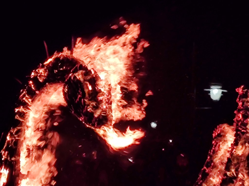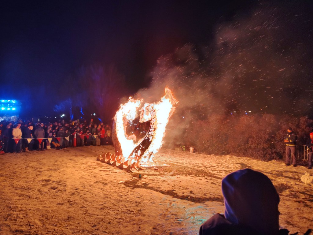 And then, Champ’s head fell off, lolling to one side with only one flimsy piece of its structure remaining. Chessie broke lower down, and then soon it all collapsed into a small bonfire. With every spark and ember, we left 2025 behind.