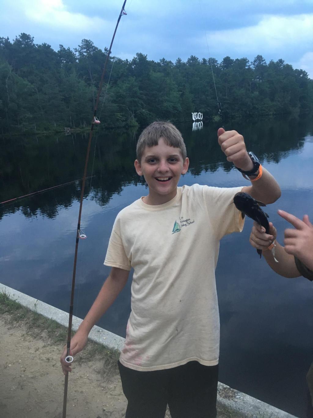 It's not a big cat, but it's the first cat this guy has ever caught!